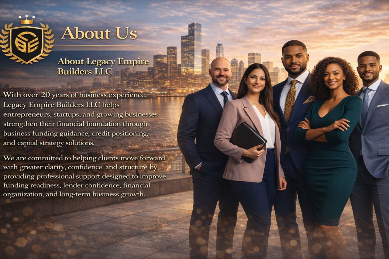 With over 20 years of business experience, Legacy Empire Builders LLC helps entrepreneurs, startups, and growing businesses strengthen their financial foundation through business funding guidance, credit positioning, and capital strategy solutions.